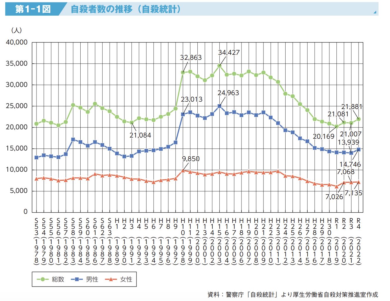 出典:警察庁「自殺統計」(厚生労働省 自殺対策推進室作成資料)